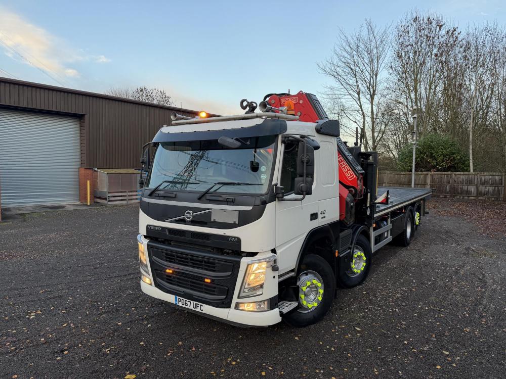 Volvo FM410 E6, 8x2 auto, sleeper, 499.164km, Fassi F545RA.2.25, 24ft body, Leg pads, 50mm vbg, 67 Reg, inspected, crane cert, August 26 mot, London compliant.
